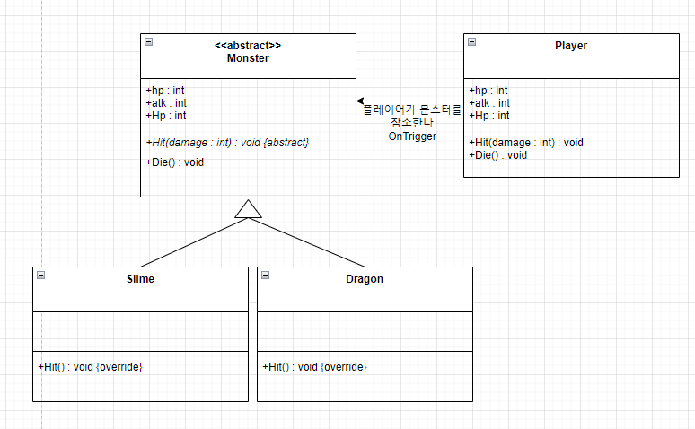 이 경우 몬스터는 더 이상 객체를 찍어내는 클래스는 아님 > 추상 클래스로 만들어준다