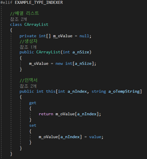 -C# 언어의 인덱서는 프로퍼티와 마찬가지로 get과 set을 통해서 로직을 정의하는 것이 가능하다.