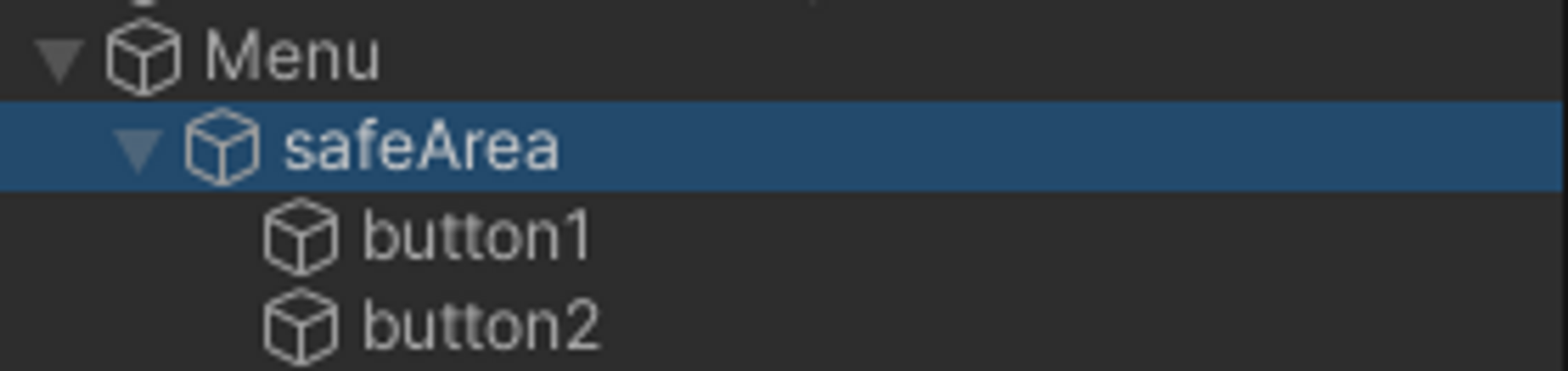 3. 그 오브젝트의 자식으로 safe area에 위치시키고 싶은 UI 컴포넌트들을 넣어주면 됩니다.